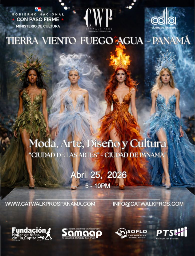 Tierra, Viento, Fuego, Agua 2026 is an international celebration of sustainable fashion, art, and design inspired by the four classical elements and their connection to nature and culture. Following three successful editions in Miami, the event will take place on April 25, 2026, at the City of the Arts in Panama City, in collaboration with the Ministry of Culture of Panama (MiCultura) and leading cultural organizations.